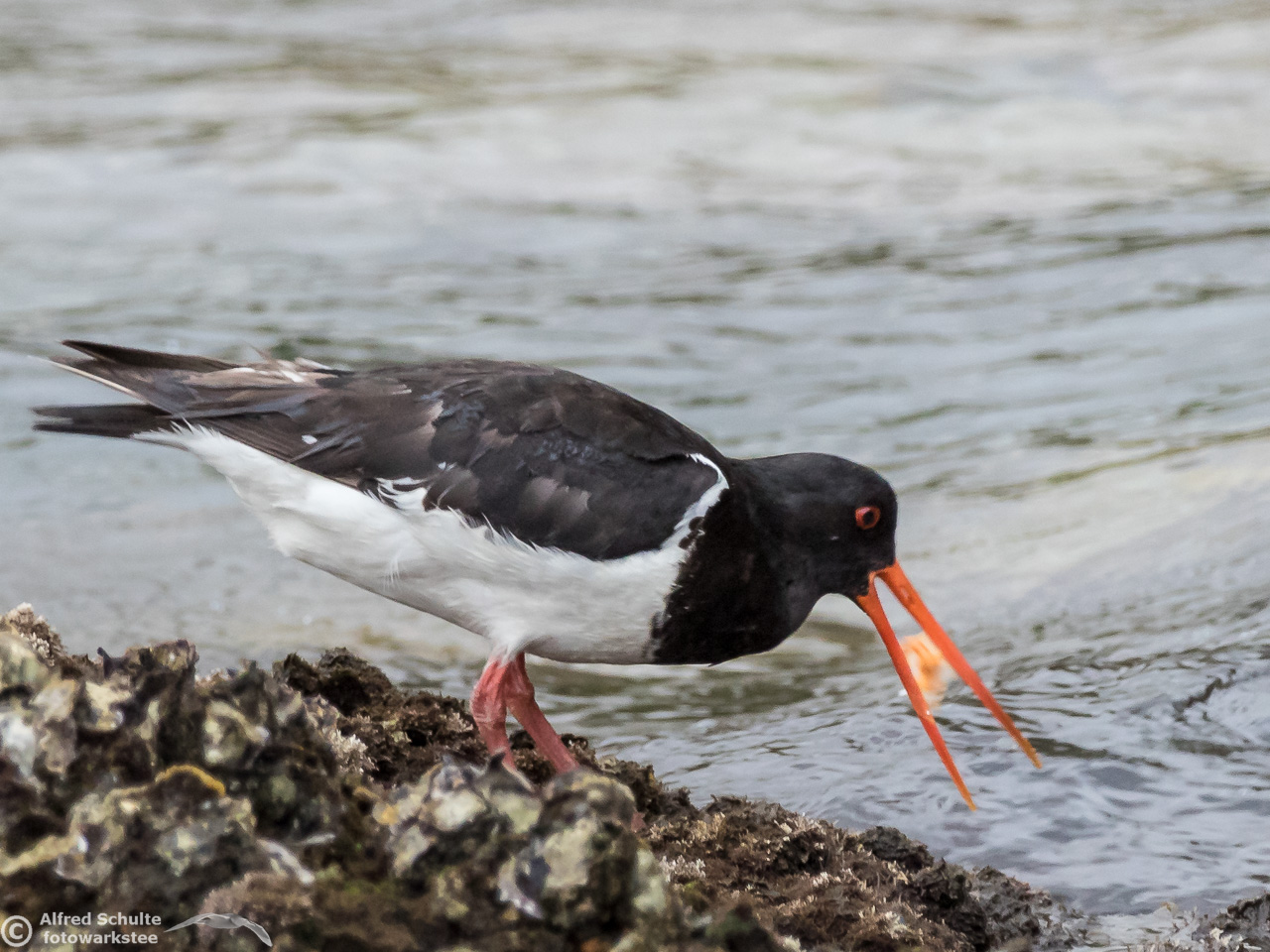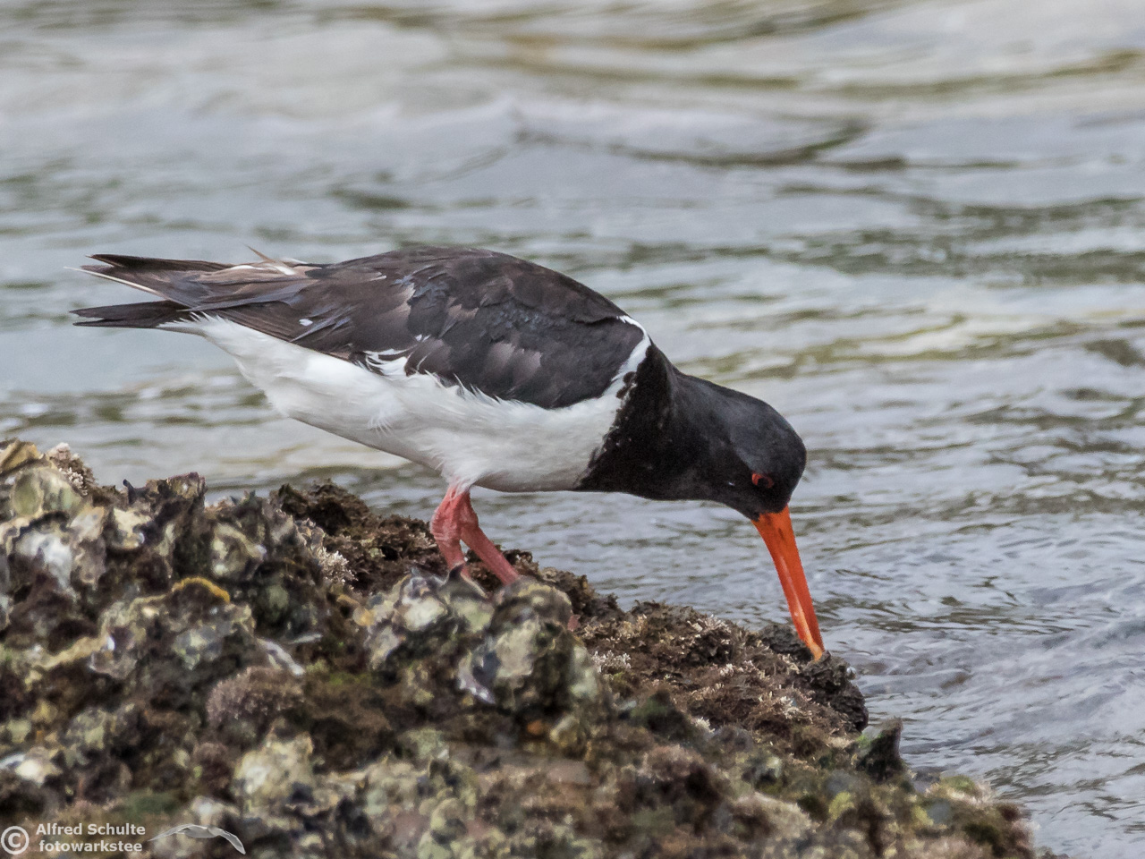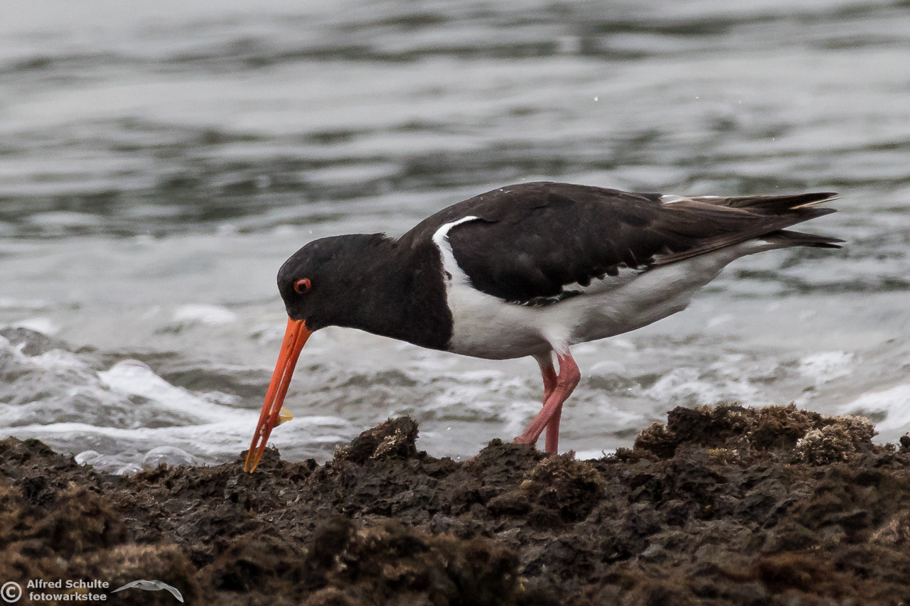 It did not come to the expected place, but went "around the corner" and got out of sight. We packed up and moved slowly to the place where it had gone - and there it was: Feeding at a low lying rock. We approached it carefully; the bird must have seen a lot of birdwatchers in the last couple of weeks, because it was absolutely unimpressed by our presence.