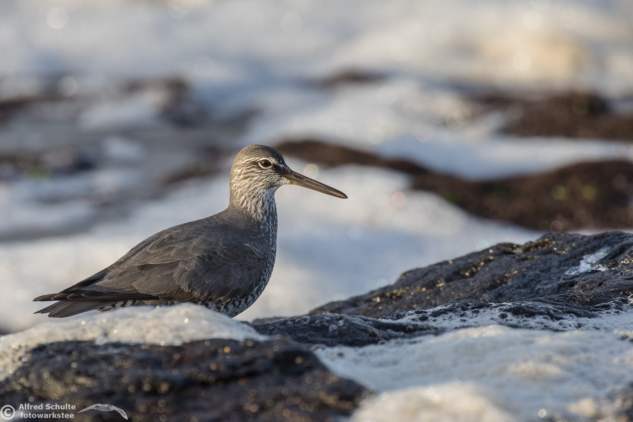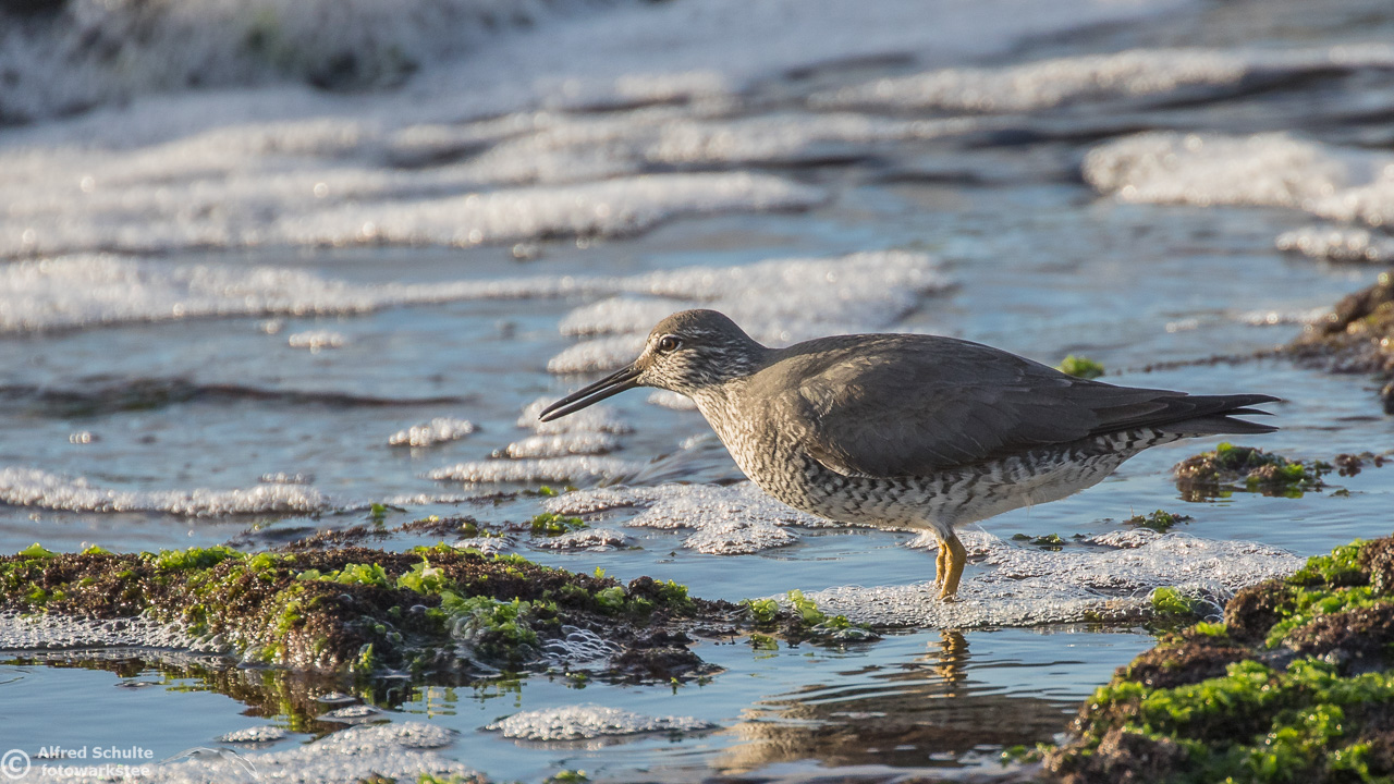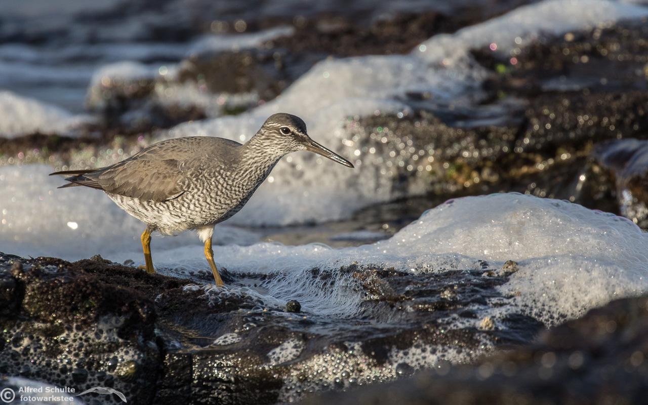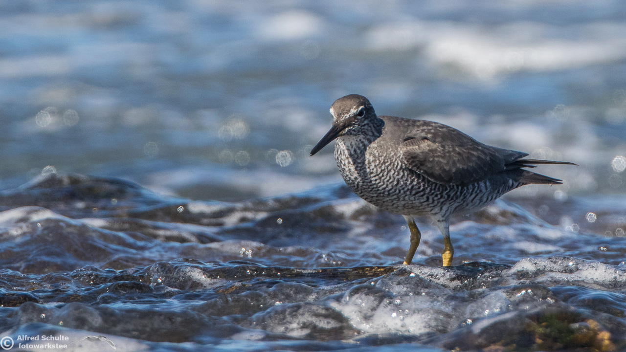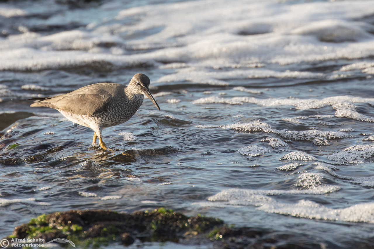 Some waders, especially in non-breeding plumage, can be difficult to distinguish in the field, e.g. the Grey-Tailed Tattler and the Wandering Tattler. Wandering Tattlers are less common in Australia then Grey-Tailed. I have collected a few shots of Wandering Tattlers, showing this wader in its typical environment. The WT is less shy when it comes to wading in deeper water than the very similar Grey-tailed Tattler. This album contains photos taken at Norah Head, NSW; Flat Rock, Ballina and Norfolk Island.
