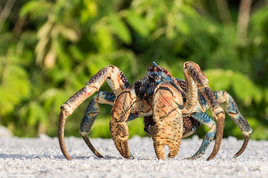 The most spectacular shots are probably the Great Frigate Birds coming in for a drink but I also like the gentle von Schrenck's Bittern very much. The migration of the red crabs had just started (which kept us away from some of the roads, which had been closed. I was also really impressed by the Coconut Crabs (Robber Crabs), which can grow as big as 50 cm! Christmas Island holds today the largest remaining population of these biggest land living crustaceans on the planet.