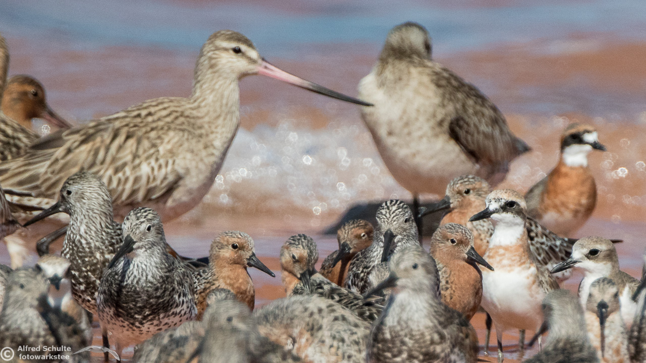 We had decided deliberately to visit Broome at this time of the year(March/April) as this is the moment when the waders have dressed up in breeding plumage and are almost ready to take off for their long flight to the northern hemisphere. The adjacent Roebuck Plains had received some decent rain in the last months, so there was an additional attraction because the inundated plains serve as feeding and breeding grounds for a great number of birds preferring a freshwater environment.
