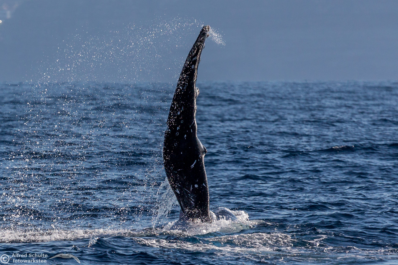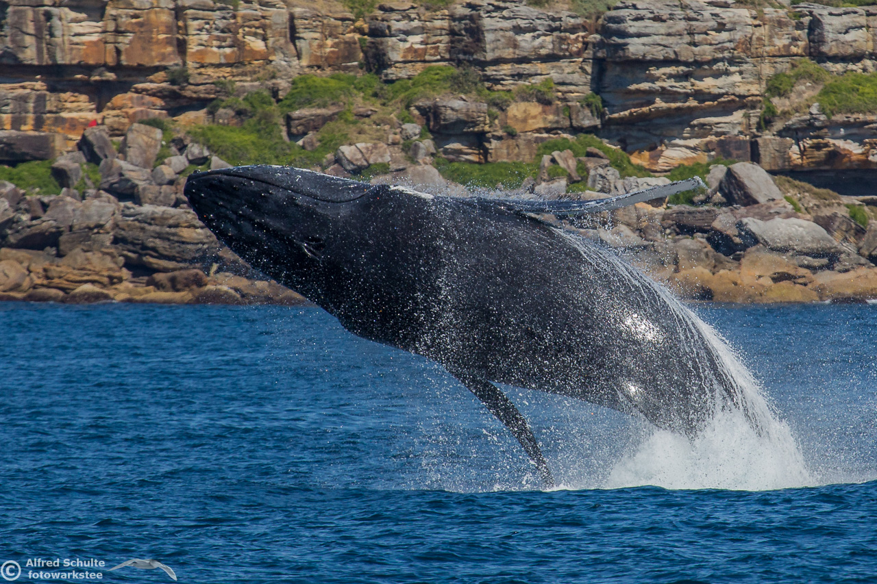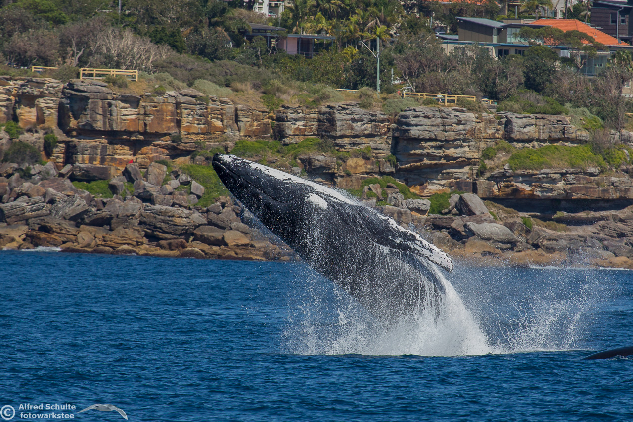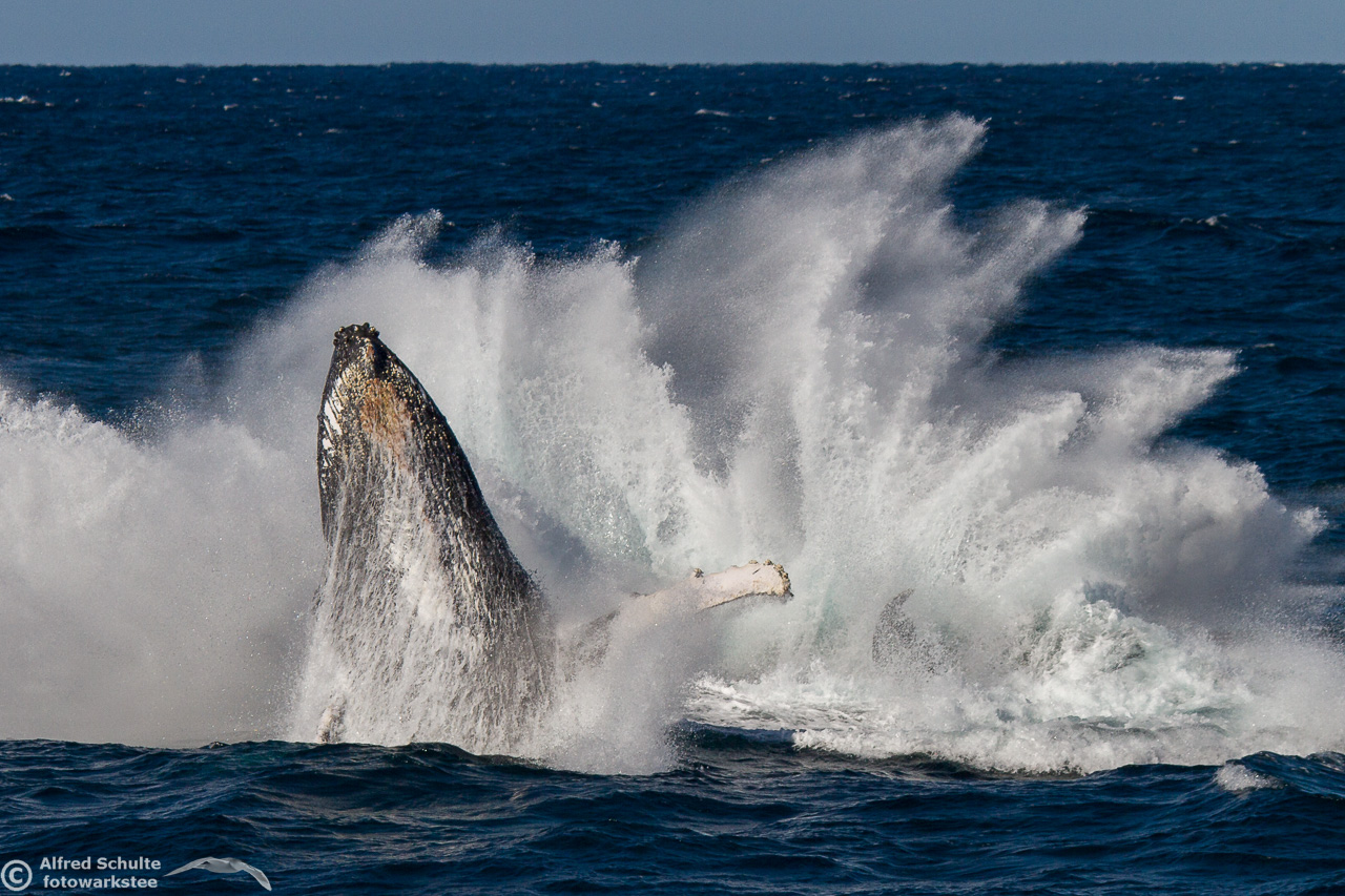 From August up to early December they return and we then see also the calves which were borne earlier off the coast of North Queensland. I have seen a number of these incredible creatures by now, but it is still an unbelievable moment when these giants of the sea breach and come almost entirely out of the water. And when you are watching the whales there is always a bit of "by-catch" like Dolphins and Flying Fish.
