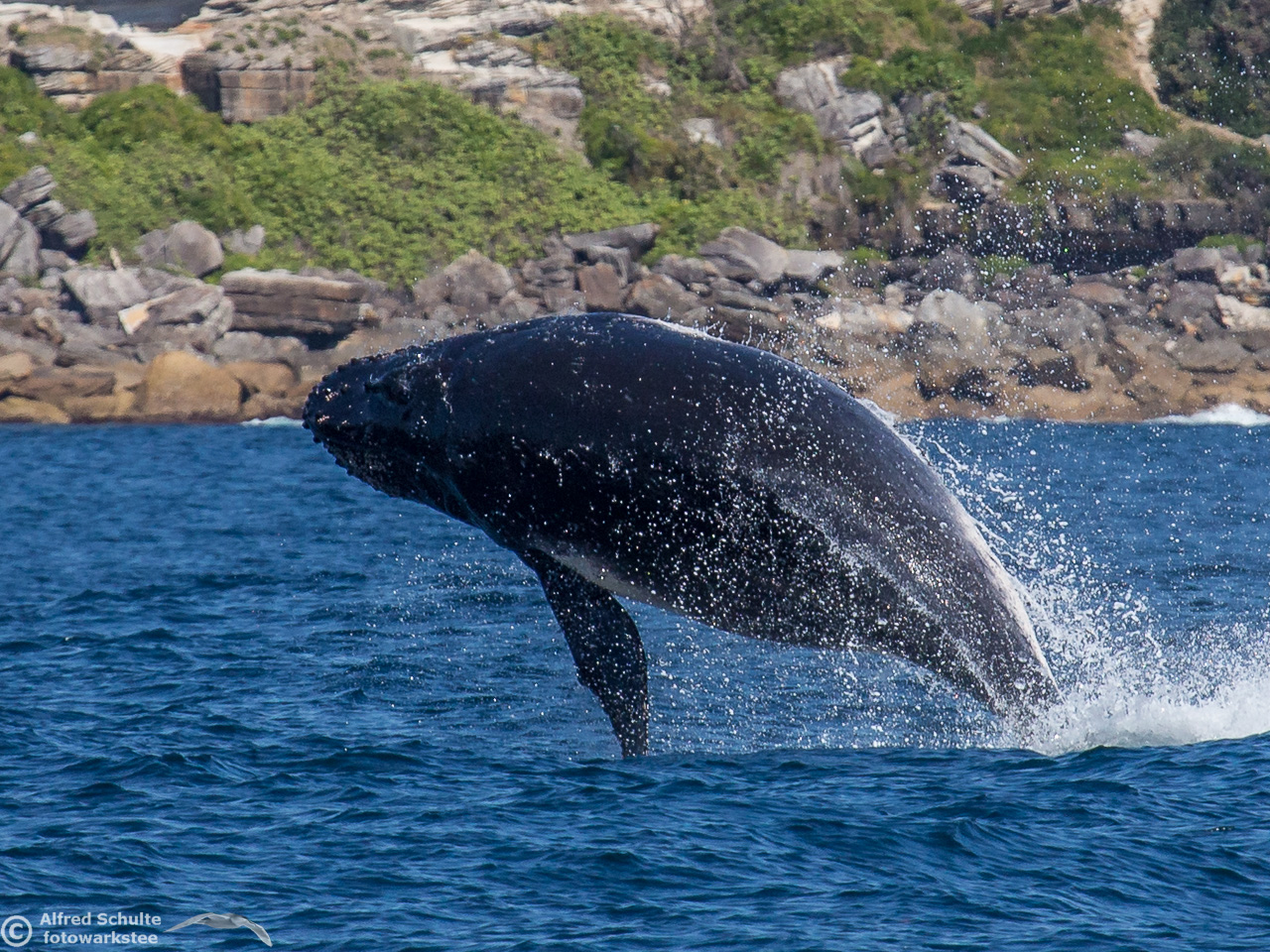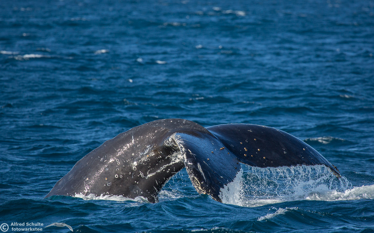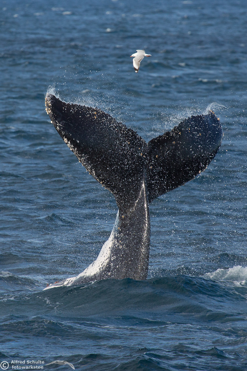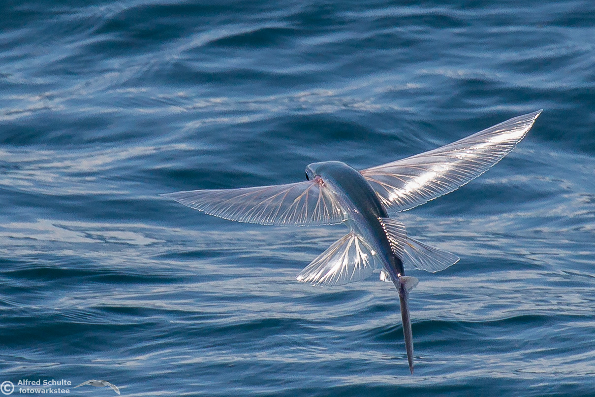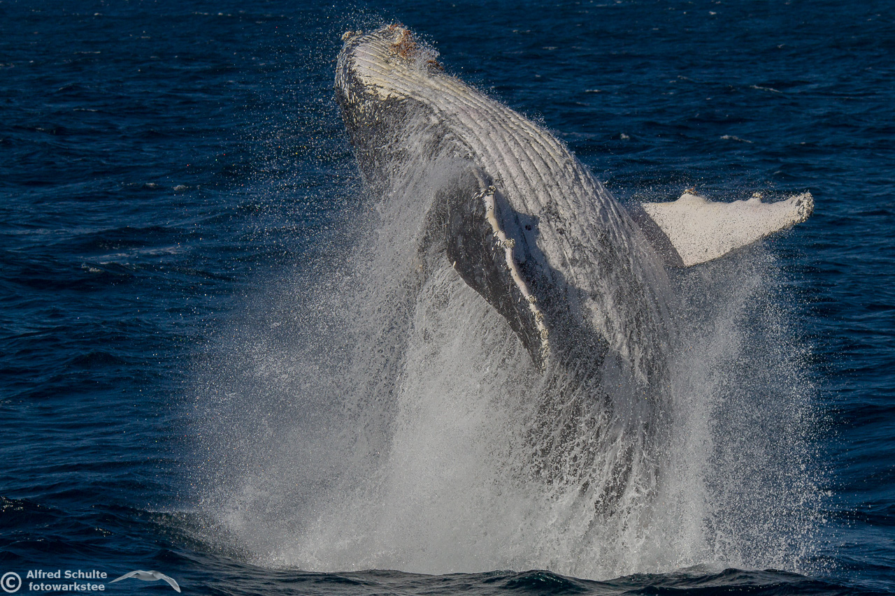 From August up to early December they return and we then see also the calves which were borne earlier off the coast of North Queensland. I have seen a number of these incredible creatures by now, but it is still an unbelievable moment when these giants of the sea breach and come almost entirely out of the water. And when you are watching the whales there is always a bit of "by-catch" like Dolphins and Flying Fish.