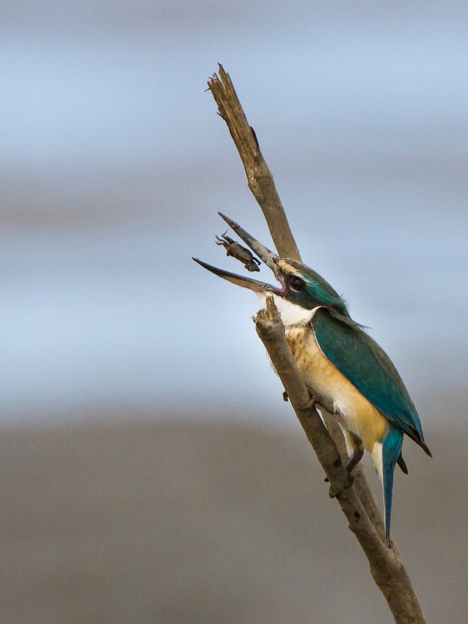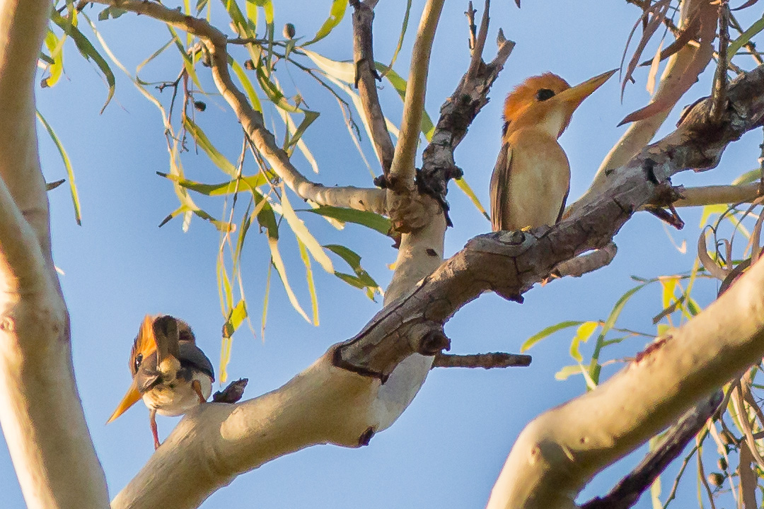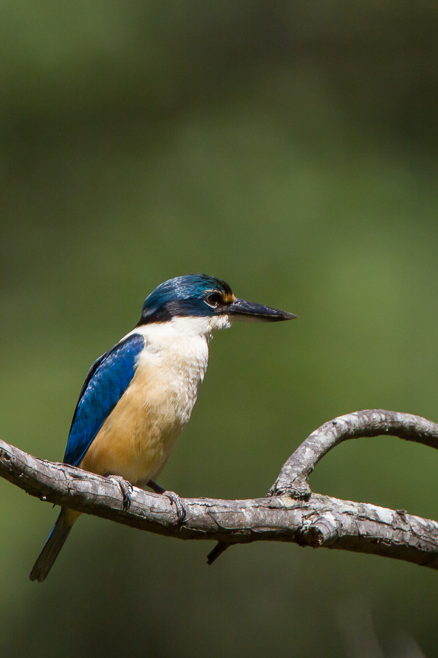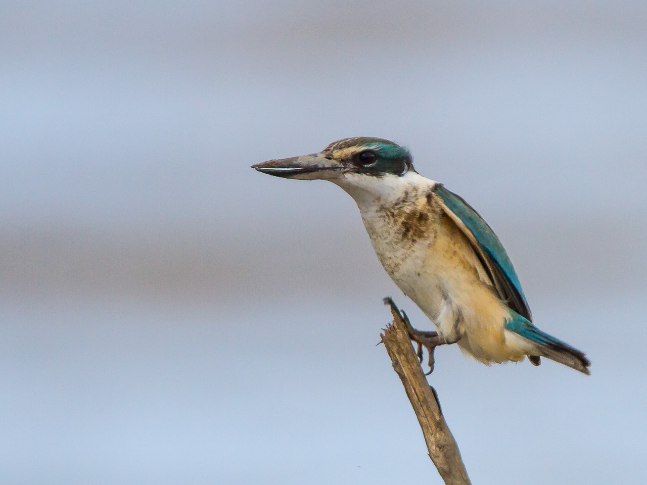 There are around a 80 species of kingfishers found all around the world, of which Australia has 10 species. The Kingfishers of Australia are spectacular, colorful small to medium sized birds, appearing in a wide range of habitats. They live primarily in wooded habitats, often near water. Although they are called "fishers", not all kingfishers are specialized fishers. Some species do consume primarily fish, but most species have diets that include significant number of insects. Kingfishers have large heads and long, sharp, pointed bills. Most of the Kingfishers in Australia are brightly colored. The Laughing Kookaburra is the largest species of kingfisher.