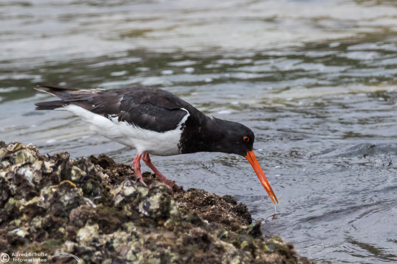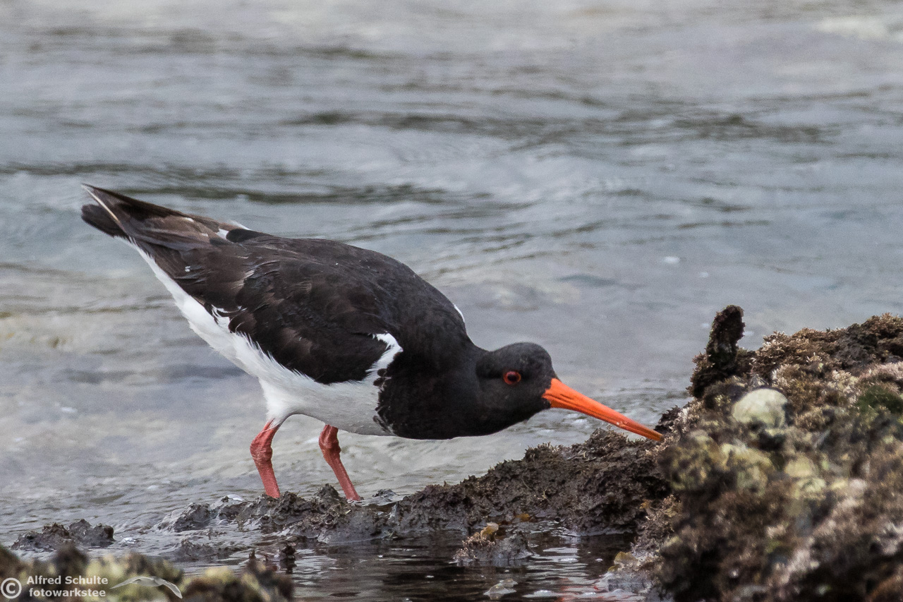 All I needed to do was taking photos and wait until the tide was coming so high that the rock went under water. That was the sign for the bird to relocate and it moved to its usual spot - allowing me some flight shots which clearly show all the characteristics, which separate a SIPO from our normal Pied Oystercatcher.