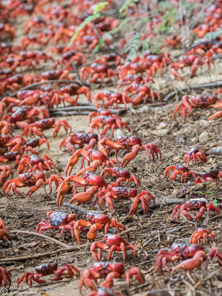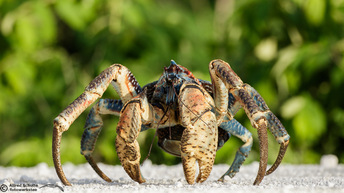 The most spectacular shots are probably the Great Frigate Birds coming in for a drink but I also like the gentle von Schrenck's Bittern very much. The migration of the red crabs had just started (which kept us away from some of the roads, which had been closed. I was also really impressed by the Coconut Crabs (Robber Crabs), which can grow as big as 50 cm! Christmas Island holds today the largest remaining population of these biggest land living crustaceans on the planet.