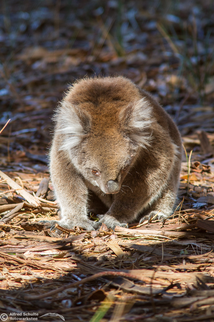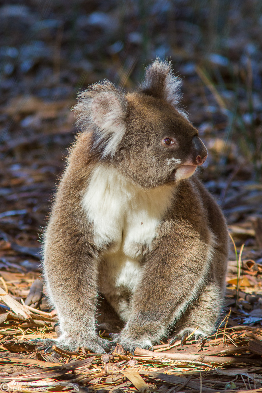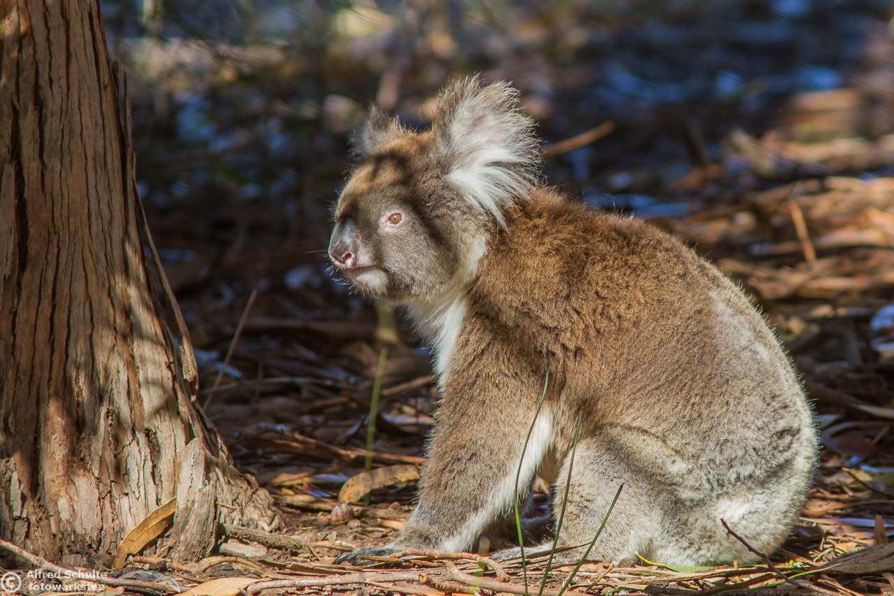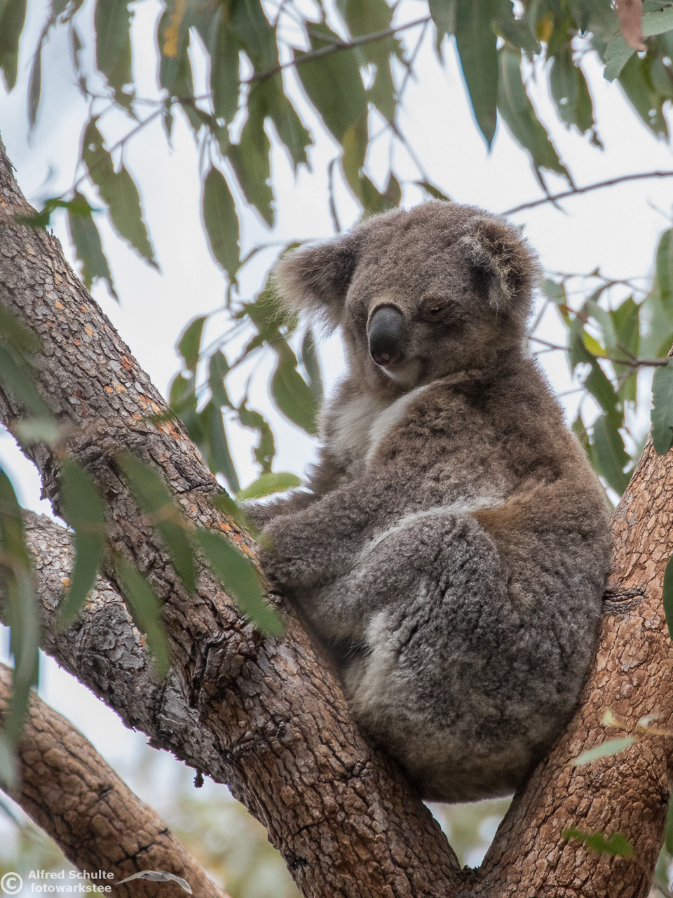 The "Koalas" albums present photos taken on Kangaroo Island.Koalas have been introduced to the island in the 1920. The koala is related to the kangaroo and the wombat and not a bear! The koala is a marsupial mammal.The fur of a Koala is pretty thick and normally light gray. It's name relates to an old Aboriginal word which means "no drink. Koalas get the required fluids for the Eucalyptus leaves they eat. Tere are probably less than 10000 animals in the wild.