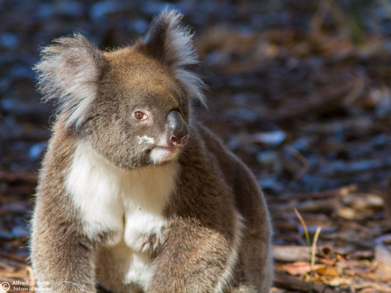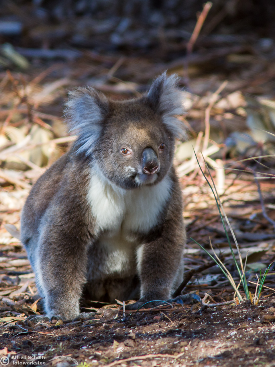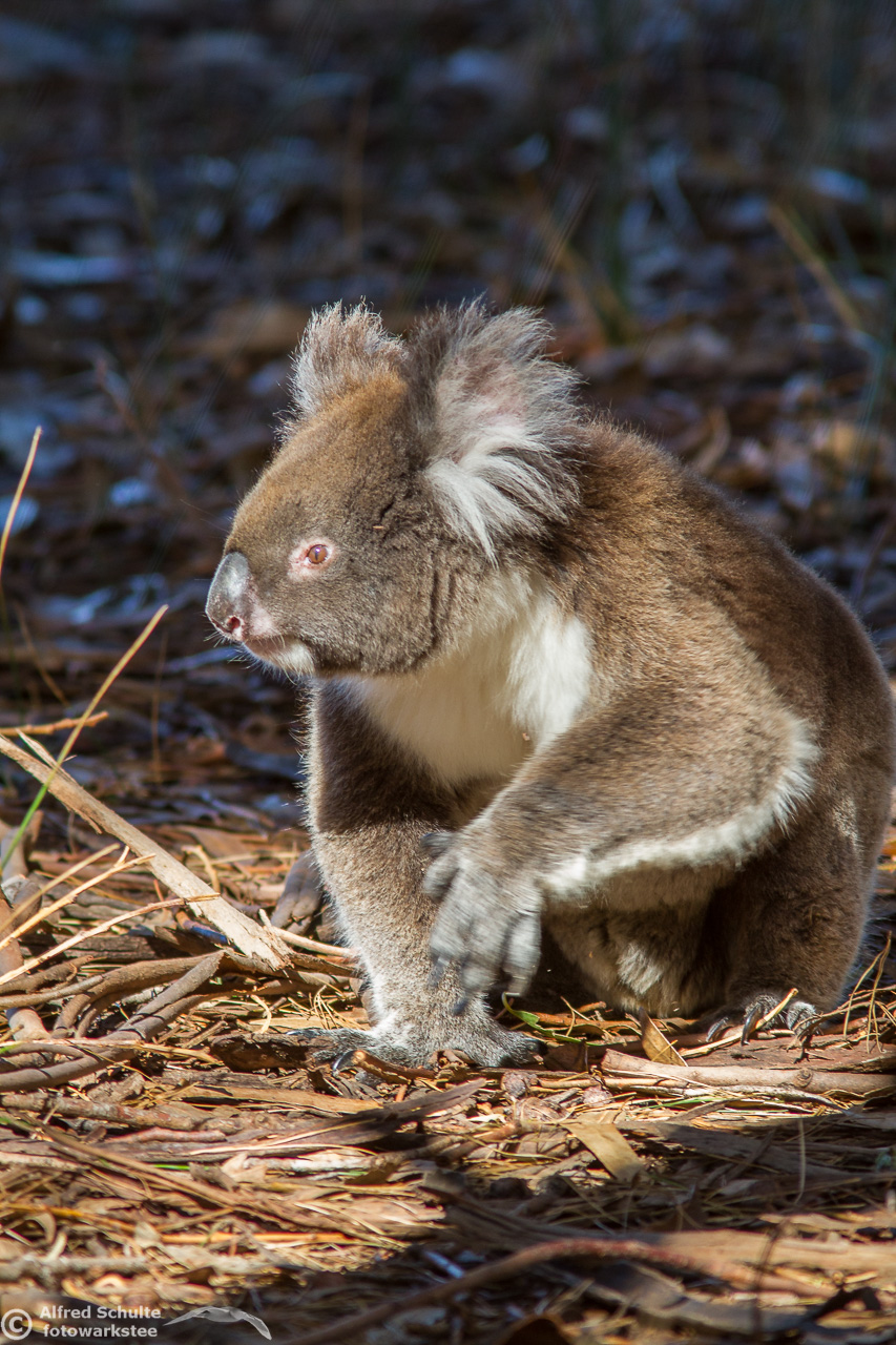 The "Koalas" albums present photos taken on Kangaroo Island.Koalas have been introduced to the island in the 1920. The koala is related to the kangaroo and the wombat and not a bear! The koala is a marsupial mammal.The fur of a Koala is pretty thick and normally light gray. It's name relates to an old Aboriginal word which means "no drink. Koalas get the required fluids for the Eucalyptus leaves they eat. Tere are probably less than 10000 animals in the wild.