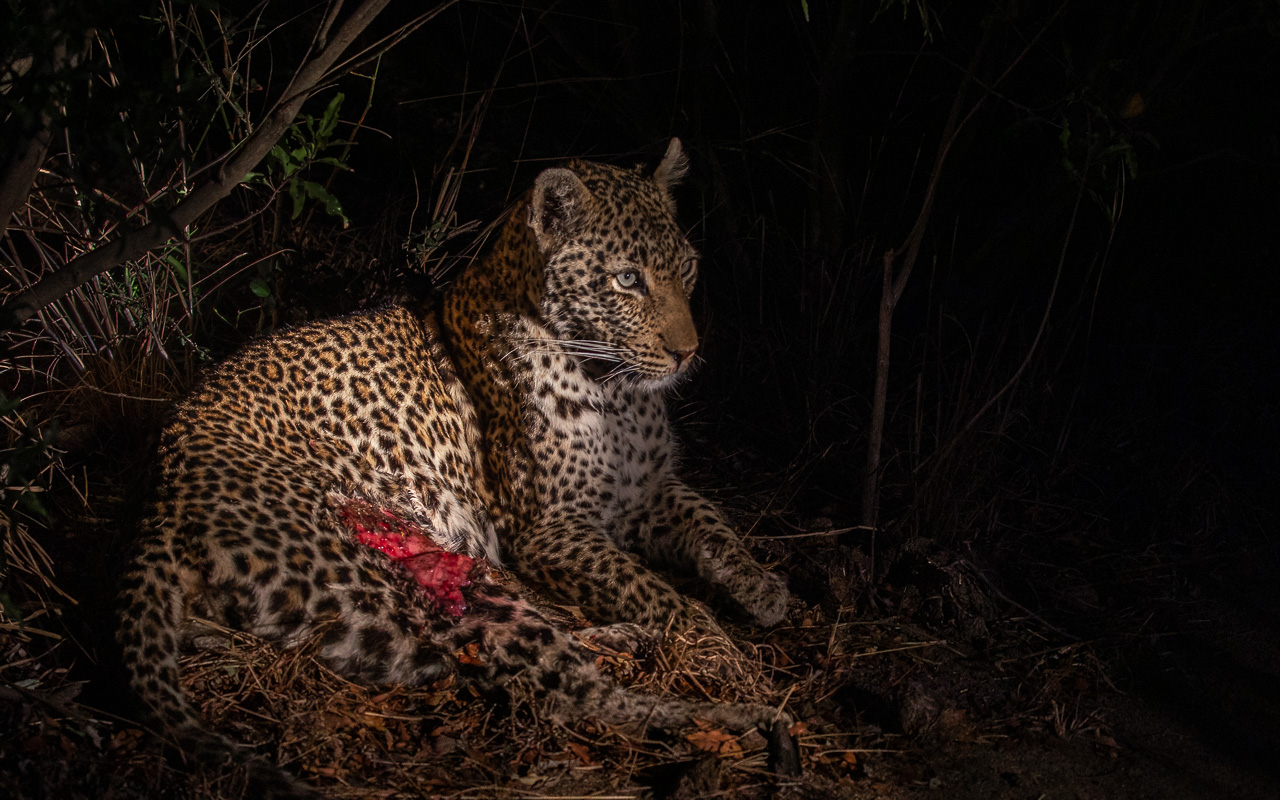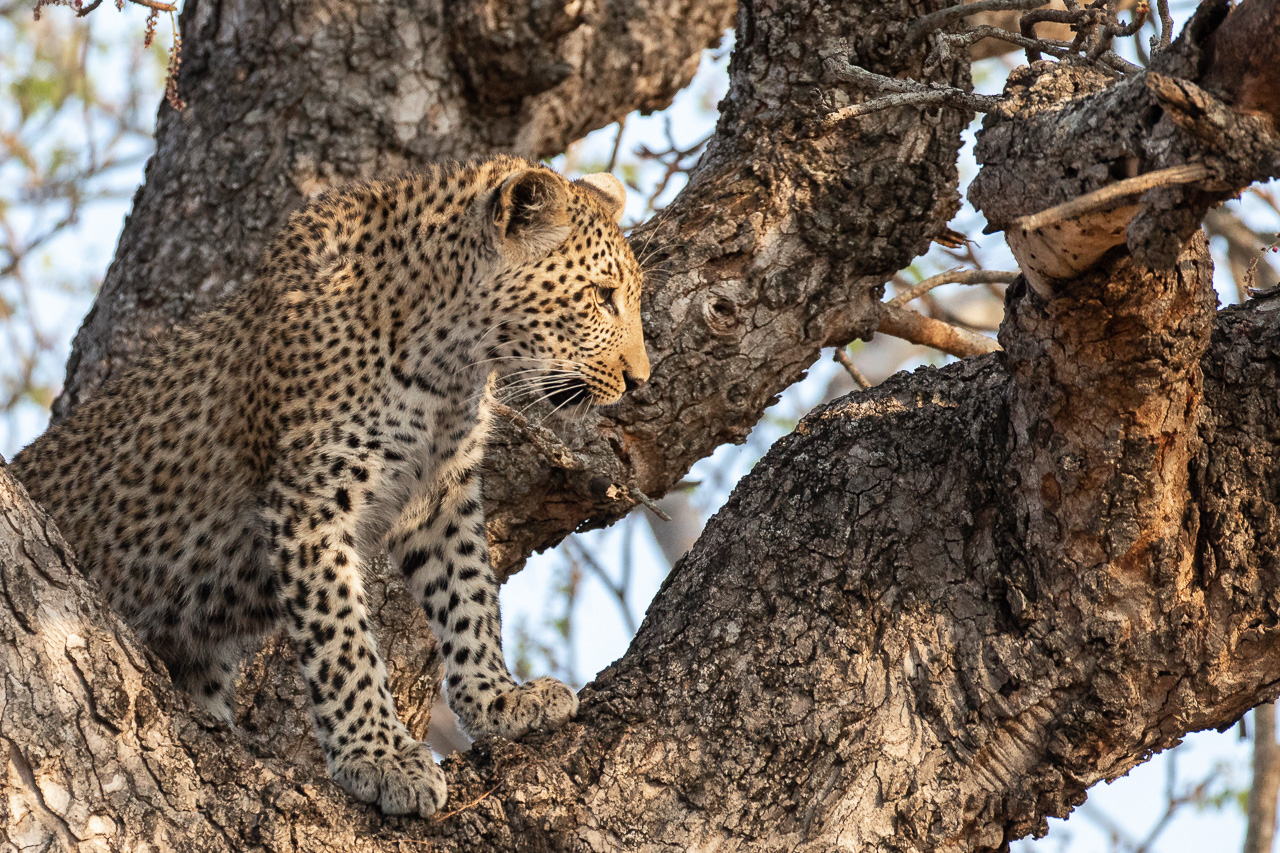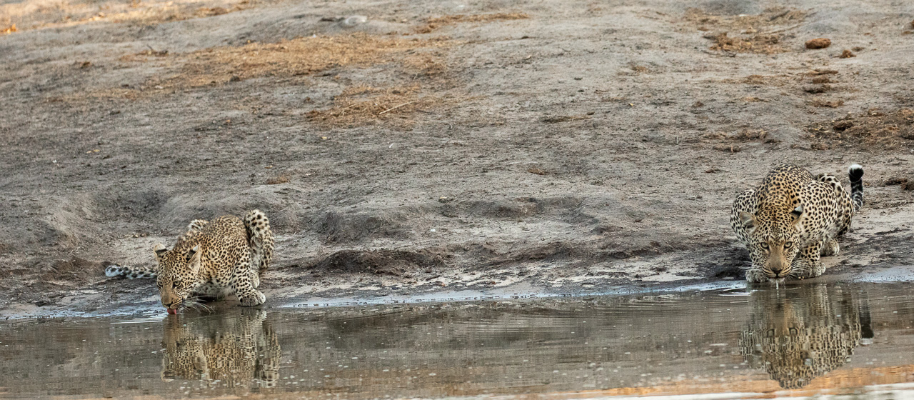 This album presents my leopard shots. Sabi Sands is a real stronghold for these big cats. You will see impressions of the life of these big cats from drinking in the morning, playing and preening but also a cub feeding on the kill of the night, an animal going into the night for a new hunt but also a female leopard attending to its serious wounds it had got from an earlier fight.